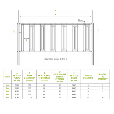 À recouper à 1,49 m en cas d'utilisation avec libre-service 1,50 m.