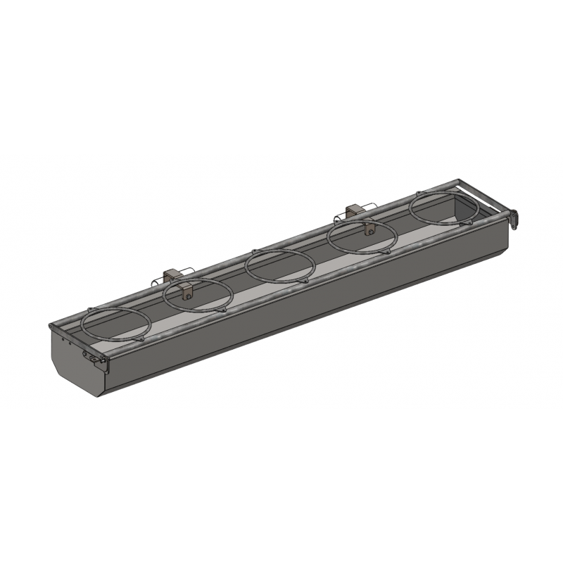 Deze voederbak is voorzien van een kader met emmerringen die je kan weg draaien als de emmers niet gebruikt worden.