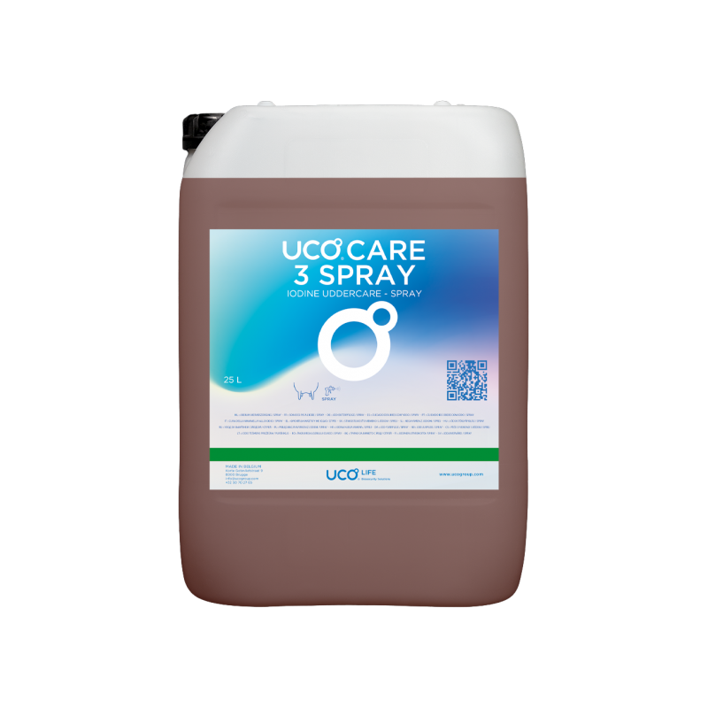 Uco Care 3 Spray is een kant-en-klaar uierdesinfectiemiddel in spraysprayvorm, speciaal ontwikkeld voor post‑milking hygiëne. Het combineert een krachtige bacteriedodende werking met een verzorgende formule, waardoor uw dieren beschermd en de melkkwaliteit gewaarborgd blijft.